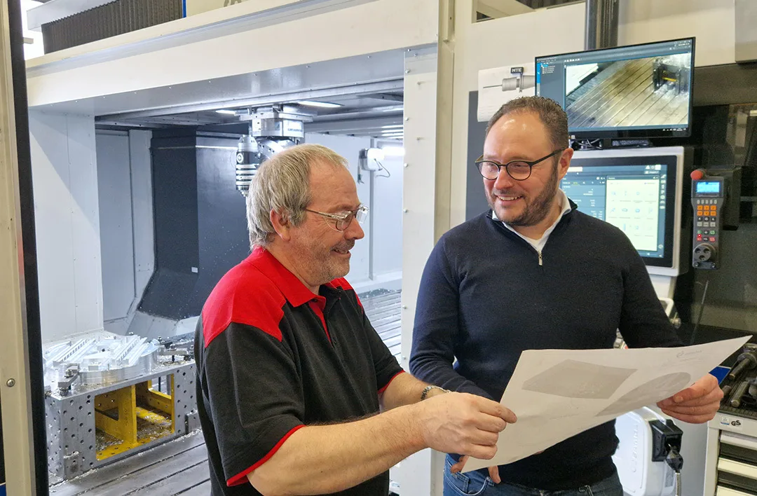 Dankzij simultane 5-assige aansturing kunnen complexe geometrieën en bewerkingen onder verschillende hoeken worden uitgevoerd zonder herpositionering van het werkstuk. Voor klanten betekent dit concreet dat grotere werkstukken vaker volledig in één opspanning kunnen worden bewerkt. Minder tussentijds uitlijnen, minder verplaatsen en minder handmatige meetmomenten zorgen voor: