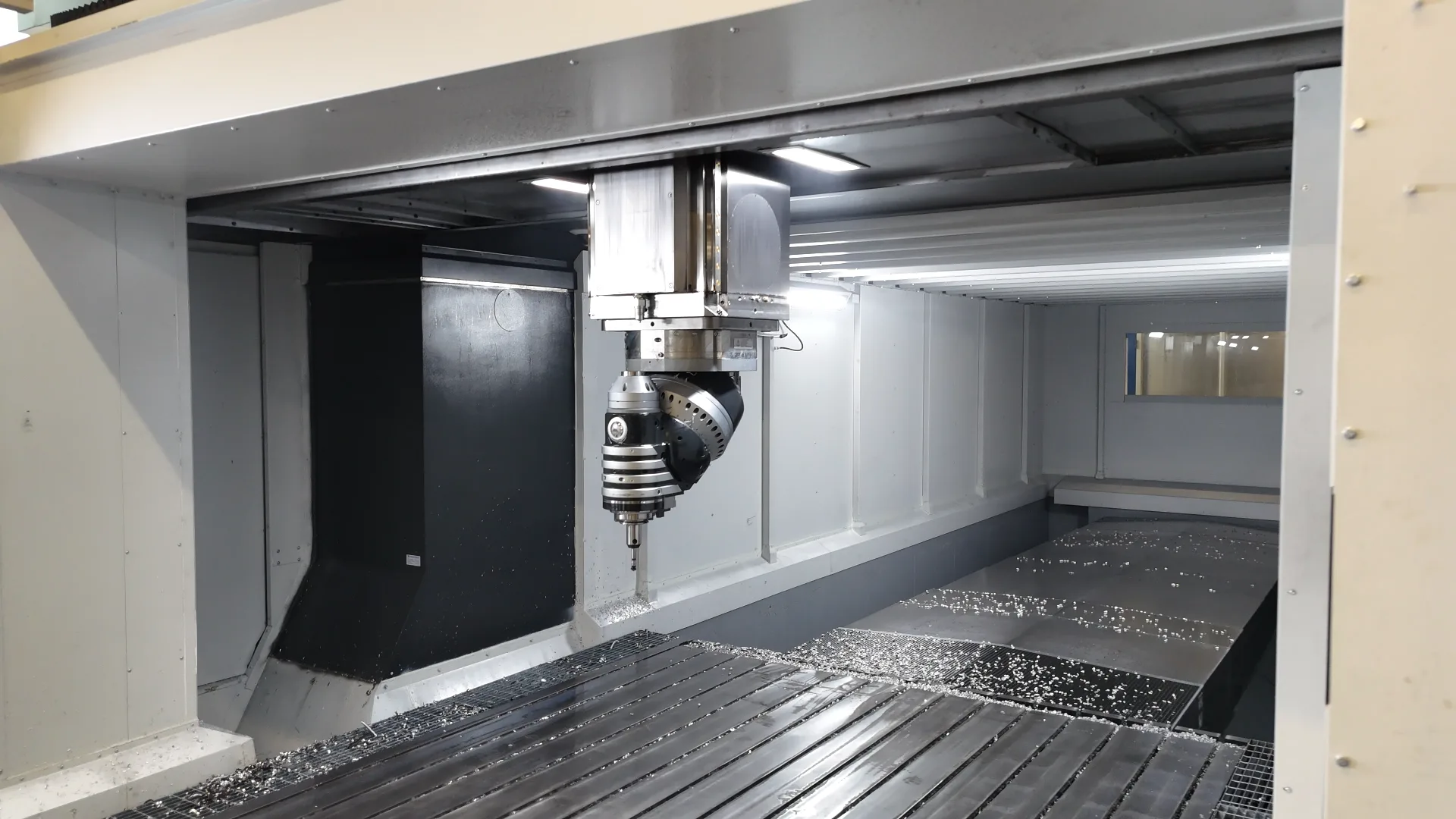 De machine is uitgevoerd met een bewegend bed in plaats van een bewegend portaal. Dit verhoogt de positioneringsnauwkeurigheid en reproduceerbaarheid, met name bij zware werkstukken. De onderlinge positie van vlakken en boringen blijft daardoor beter beheersbaar. Voor tolerantiekritische toepassingen in bijvoorbeeld machinebouw, energie of hightech is dit een belangrijk onderscheidend kenmerk.