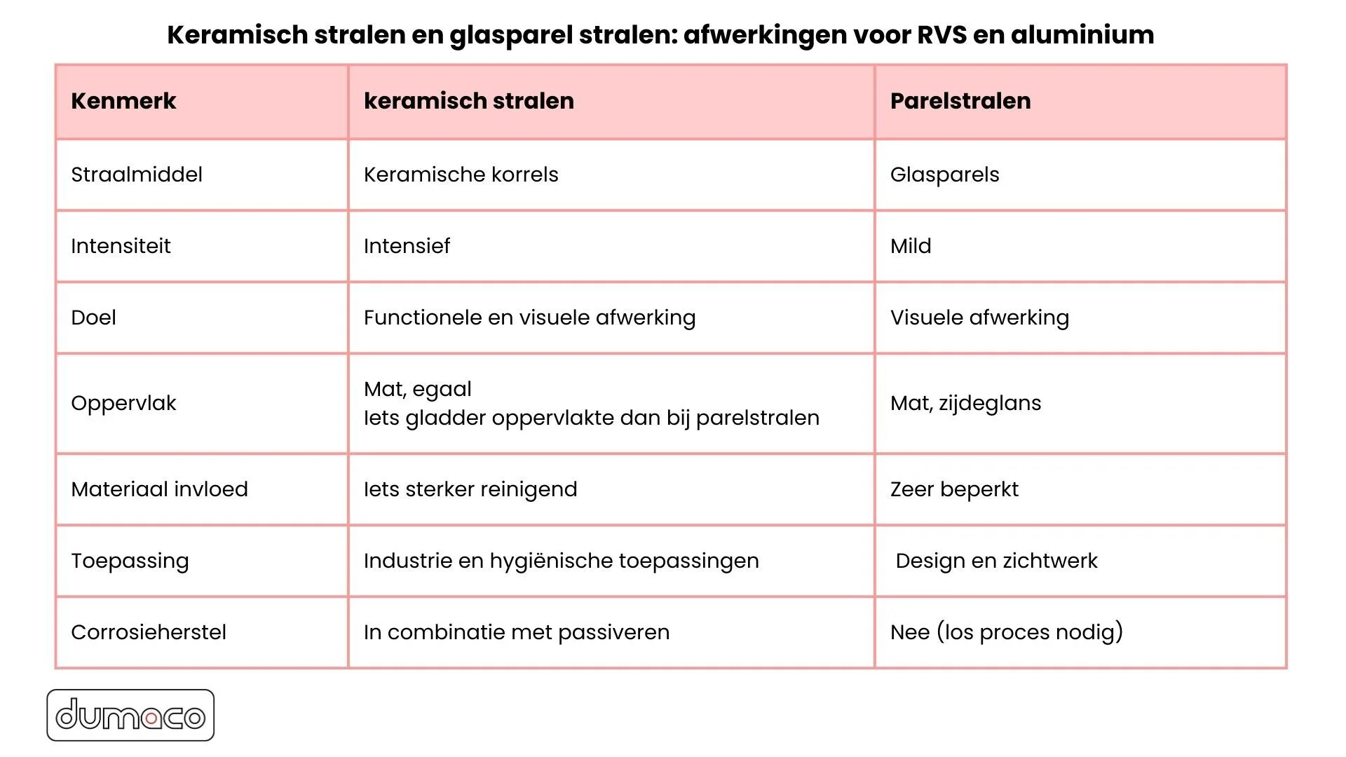 Ja. Bij Dumaco worden keramisch stralen, glasparelstralen en andere oppervlaktebehandelingen in eigen straalcabines uitgevoerd, waardoor kwaliteit, snelheid en procescontrole worden gewaarborgd.