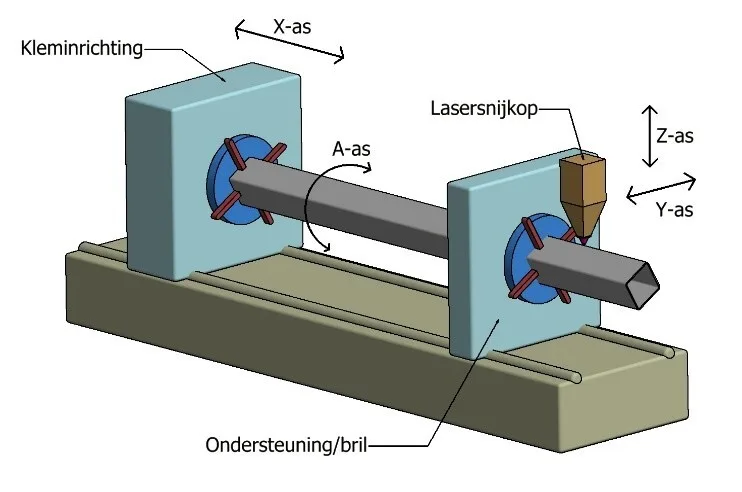 De buislasermachine bestaat uit 5 basis onderdelen, te weten: